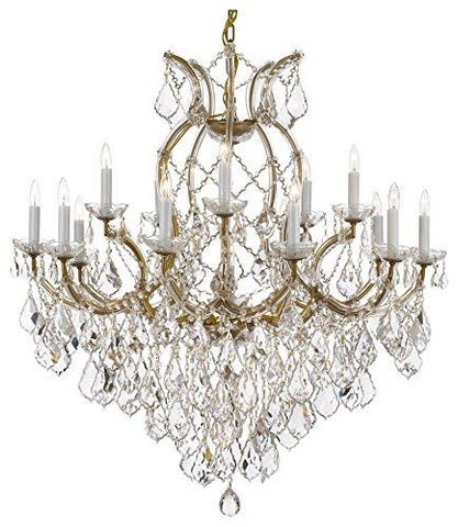 This beautiful Chandelier is trimmed with Empress Crystal(TM) Maria Theresa 100% Crystal Chandelier. A great European Tradition. Nothing is quite as elegant as the fine crystal chandeliers that gave sparkle to brilliant evenings at palaces and manor houses across Europe. This two-tier version from the Maria Theresa collection is decorated with various 100% crystal that capture and reflect the light of the candle bulbs, each resting in a scalloped bobache. The timeless elegance of these chandeliers is sure to lend a special atmosphere in every home. Please note this item requires assembly. This item comes with 18 inches of chain. SIZE: HT 52 X WD 46 LIGHTS: 24 LIGHTS