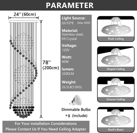 D24'' x H78'' Crystal Chandelier for Entryway High Ceiling Chandeliers Glam Chandelier Modern Large Raindrop Chandeliers LED Dimmable Light Fixtures for Staircaes Foyer Living Room A100-B0DPMFV5VW