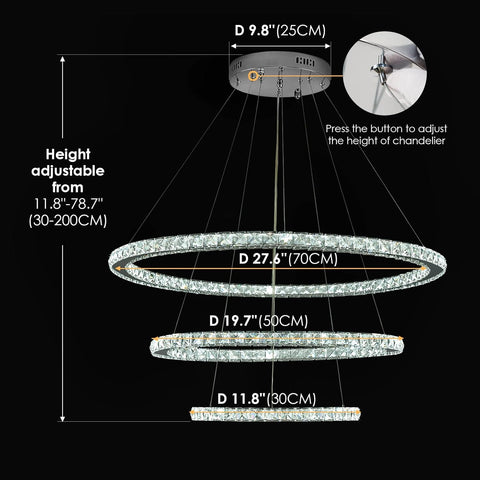 LED Chandelier, Modern Ceiling Light Fixture with 3 Crystal Chandelier Lighting Rings, DIY & 3-Color Changing 3 Rings Adjustable Chandeliers for Living Room Dining Room Kitchen, D 12"-20"-28" A100-B00NJKH7DQ