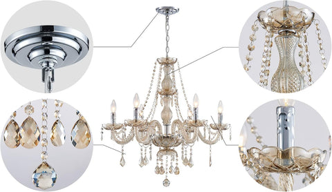 6 Light Chandelier Modern K9 Crystal Chandelier Lighting, Champagne Crystal Ceiling Light Fixture Pendant Lamp for Dining Room Bathroom Bedroom Livingroom A100-B09F389BJS