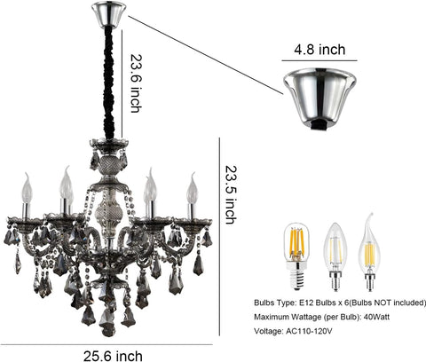 Modern Crystal Chandelier 6 Light Smoke Gray Crystal Chandelier Lighting Ceiling Hanging Crystal Light Fixtures for Living Room Dining Room Bedroom A110-B0D7VX3B74