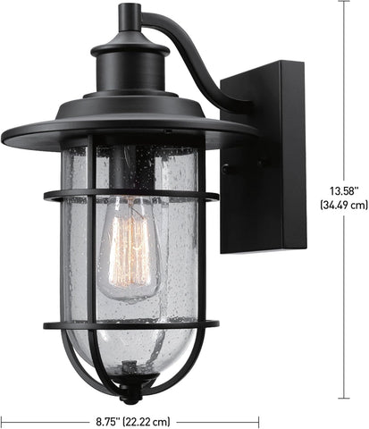 1-Light Outdoor/Indoor Wall Sconce, Black Finish, Seeded Glass Shade, Coastal Modern Design, Weather-Resistant, E26 Base A123-B01MS9OEGJ