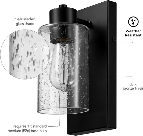 Electric 60000129 1-Light Outdoor Wall Sconce, Dark Bronze, Clear Seeded Glass A123-B0DH65H9VS