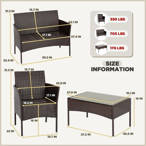 4 Pieces Patio Furniture Set Wicker Patio Conversation Set with Rattan Chair Loveseats Coffee Table for Outdoor Indoor Garden Backyard Porch Poolside Balcony,Brown Wicker/Blue Cushions A106-B0BMQ293GR