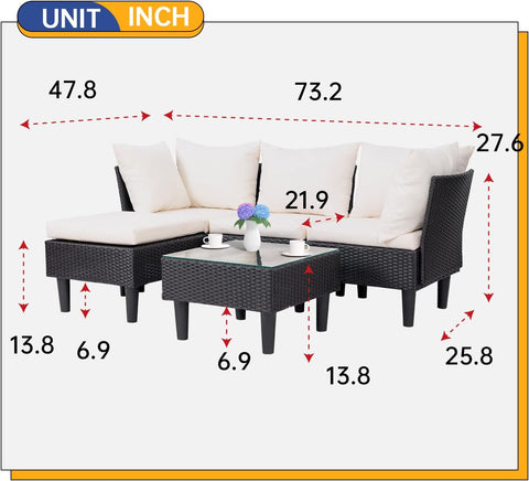 This modern outdoor sectional sofa comes with enough room to seat 3-4 friends comfortably with a Table to hold food and drinks.When you try to install the Patio Furniture Set, try to line the hole together in all side, do not over tight one hole, then try to tight it slowly in each side