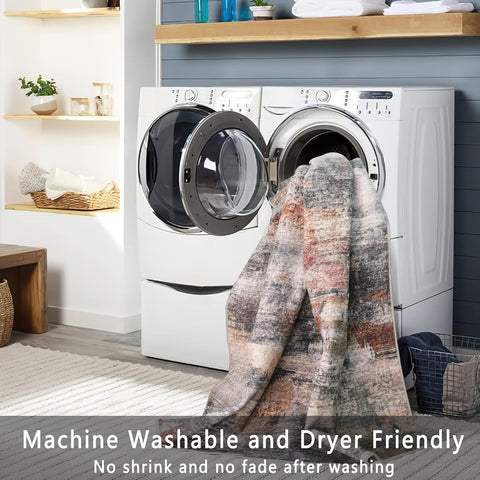 6x9 Washable Abstract Area Rug, Soft Non-Slip Carpet for Living Room Bedroom Grey Rust