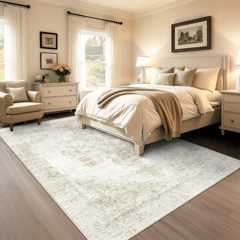 6x9 Washable Vintage Medallion Area Rug, Soft Non-Slip Carpet for Living Room Bedroom Beige