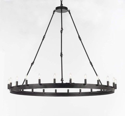 Wrought Iron Vintage Barn Metal Castile One Tier Chandelier Chandeliers Industrial Loft Rustic Lighting W 50" H 48" Size: W 50" H 48" 24 Lights