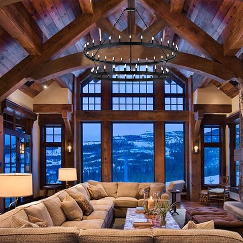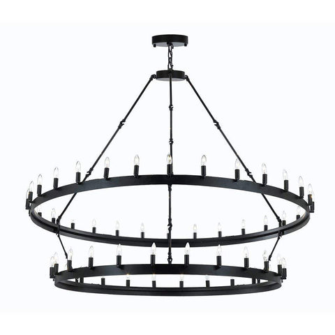 Set of 2 - Wrought Iron Vintage Barn Metal Castile Two Tier Chandelier Chandeliers Industrial Loft Rustic Lighting W 63" H 60" Size: W 63" H 60" 54 Lights