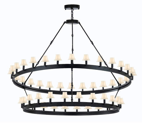 Set of 2 - Wrought Iron Vintage Barn Metal Castile Two Tier Chandelier Chandeliers Industrial Loft Rustic Lighting W 63" H 60" w/White Shades