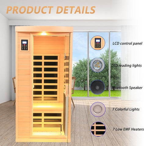 1 Person Low EMF FAR Infrared Sauna, Canadian Hemlock Home Saunas, 6 Heating Panels Personal Sauna Room,1460watt Indoor Saunas with LED Reading Lamp, LCD Display-Control, Bluetooth Speakers A129-B0D7RT1DXQ