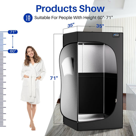 Crafted from premium thermal insulation fabric, the 35"x35"x71" portable infrared sauna for home is highly sealed to prevent heat loss, maximizing energy efficiency and maintaining optimal comfort. The fabric is also easy to clean, making maintenance effortless. This sauna infrared tent is designed for both convenience and performance, ensuring a luxurious experience every time.