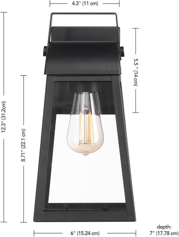 1-Light Outdoor Wall Sconce, Matte Black, Clear Glass Shade, Porch Light, Wall Lights for Living Room, Patio Decor, Apartment Essentials, Outside House Lights A123-B0C8ZL4XLY