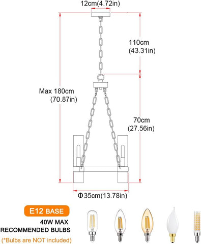 Engineered specifically for 100-150 sq ft kitchen or entryway, our 13.8 in compact 3-light chandelier combines farmhouse with space-efficient practicality. With three E12 bulbs deliver 360 balanced task lighting