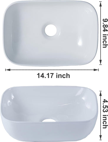 Bathroom Vessel Sink Small, 14" x 10" Above Counter White Porcelain Ceramic RV Bathroom Sink Countertop Vanity Restroom Sinks Bowl, Wash Basin for Bathrooms A131-B0CQ8854CW