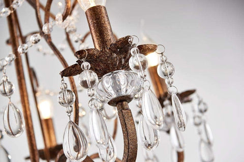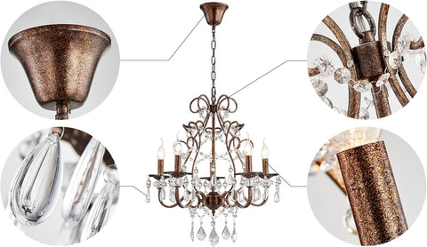 The rustic chandelier light fixture is solidly made by glittering hanging clear crystal and bronze metal finish, and could light up your room extremely and widely to create a superior and classy atmosphere in your living room, dining room, bedroom, foyer or any other dry place.