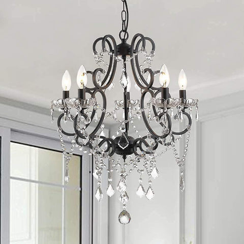 5 Lights K9 Crystal Chandelier, Modern Raindrop Candelabra Pendant Lamp, Candle Ceiling Hanging Lighting Fixture, for Dining Room, Living Room, Black A109-B081L3L45Z