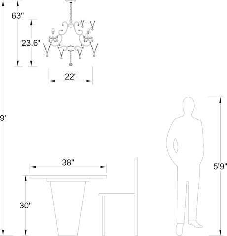 High-grade K9 crystals, strong light transmission; metal frame, stable and sturdy, avoid frequent replacement. 5 40-60 watt candelabra bulbs required. 22 " diameter x 63 " height. The chandelier has the unparalleled beauty of other lamps, it is suitable for the dining room, living room, kitchen. The chandelier is accompanied by a detailed instruction manual, convenient and straightforward to install. If you have any questions, please feel free to contact us, or if you are not satisfied with the purchase, we will also help you solve the problem within 24 hours.