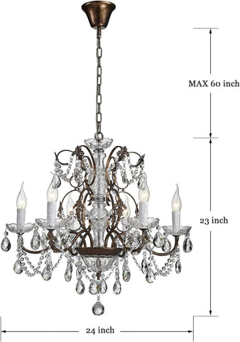 6-Light Crystal Chandelier - Farmhouse Rustic Pendant Light Fixture for Bedroom, Dining Room, Living Room - H23 x W24, Chain Adjustable A109-B07DPKL8JB