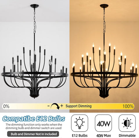 Black Chandelier 24-Light Industrial Iron Candle Chandelier Modern Suspended Farmhouse Chandeliers Pendant Light Fixtures for Dining Room Bedroom Living Room Kitchen Island Foyer E12 Bulb A109-B0CNG27665