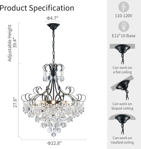 Crystal Chandelier K9 Crystal Lighting Chandelier for Living Room 10 E12 Bulbs High 27.6 in x Diameter 22.8 in, Black A110-B0CTG29QR7