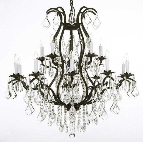 Set of 2 - This beautiful Chandelier is trimmed with Empress Crystal(TM) A Great European Tradition. Nothing is quite as elegant as the fine crystal chandeliers that gave sparkle to brilliant evenings at palaces and manor houses across Europe. This beautifully unique version from the Versailles Collection has 100% Crystal that capture and brilliantly reflect the light of the candle bulbs. The frame is all wrought iron, adding the finishing touch to a wonderful fixture. The timeless elegance of this chandelier is sure to lend a special atmosphere anywhere its placed! Please note this item requires assembly. This item comes with 18 inches of chain. size: H36" x W36" 15 LIGHTS.